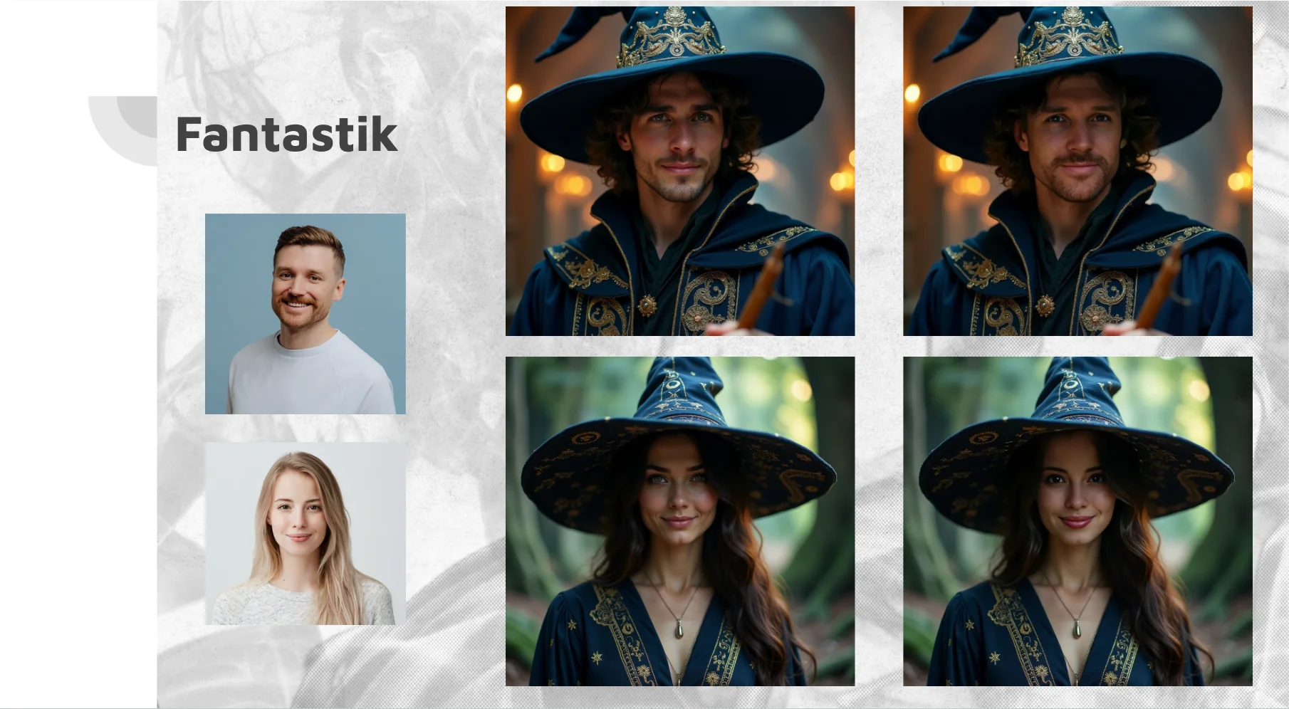 Konseptler arasında; savaşçı, fantastik, cyberpunk, 90’lar, heykel, 3 boyutlu karakter, çizgi roman karakteri, F1 pilotu, Marvel karakteri, Game of Thrones karakteri, illüstrasyon, Rönesans karakteri ve Kübizm karakteri gibi ilginç seçenekler yer almaktadır.